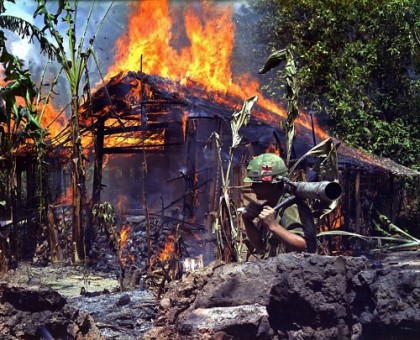 Vojáci zde jsou vyfotografovaní po těžkém kontaktu se severovietnamskými sílami, šest mil východně od kambodžské hranice v prostoru válečné zóny C. Muži jsou příslušníci C Company, 2. praporu, 16. pěší čety, 2. brigády, 1. pěší divize.